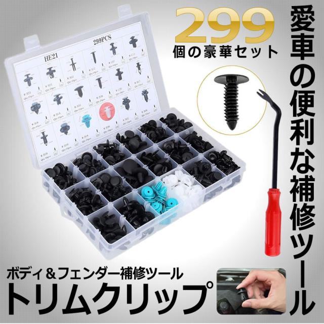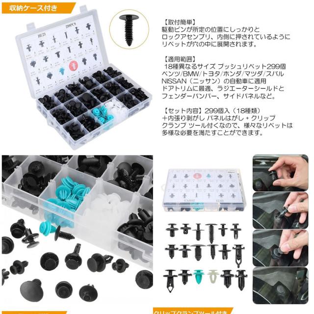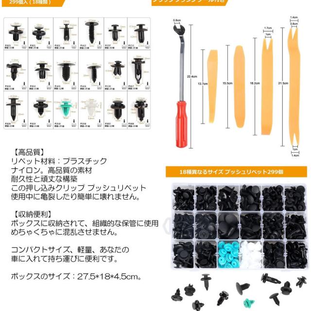 車用 トリムクリップ 299個 18種類 バンパー プッシュ型 リベット 自動車フェンダー バンパー 固定用 押し込み式 PUSHUTORI