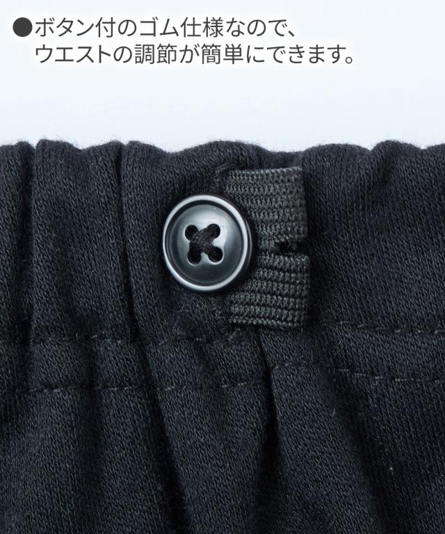 品質=身生地:ポリエステル95%・ポリウレタン5%(カットソー) ボタン付ゴム仕様(ウエスト調節可) 原産国:中国製 洗濯表示:洗濯機OK ネット使用