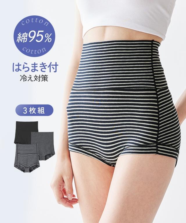 はらまき付・お腹らくちん綿混ストレッチショーツ3枚組