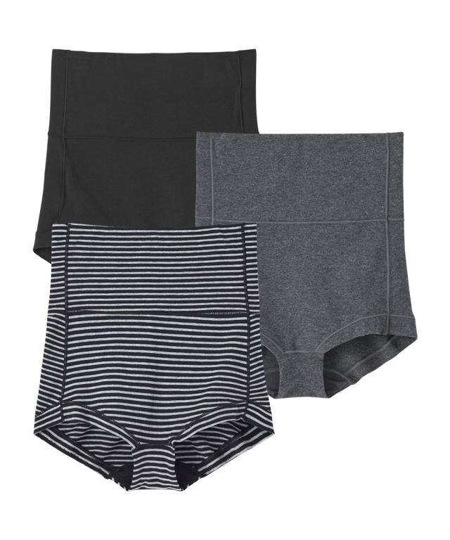 ショーツ スタンダード レディース はらまき付 お腹らくちん 綿混 ストレッチ 3枚組/ボーダー+黒+チャコール杢 M/L/LL/3L インナー ニッセン nissen