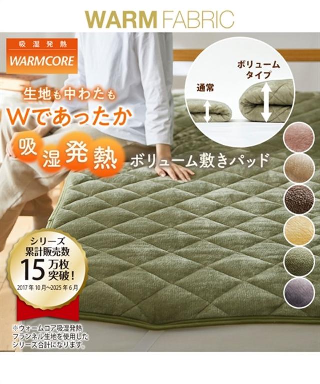 敷きパッド ボリュームアップ ウォームコア 吸湿発熱×蓄熱保温わた あったか フランネル 中わた 冬 セミダブル ニッセン nissen