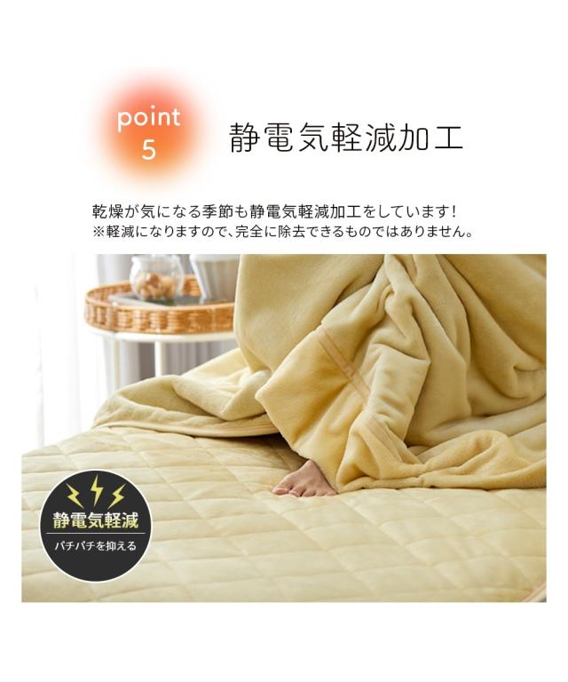 ●品質=表地:毛羽部分:ポリエステル100%/基布部分:ポリエステル55%・レーヨン45%、裏地:ポリエステル80%・綿20%、詰め物=ポリエステル100%(保温わたEASY WARM50%使用) ●4隅ゴム付 ※素材の特性上、ご使用中の摩擦により毛羽落ち毛玉が発生し、他のものに付着することがあります。 原産国:中国製 洗濯表示:洗濯機洗い可 (ネット使用)