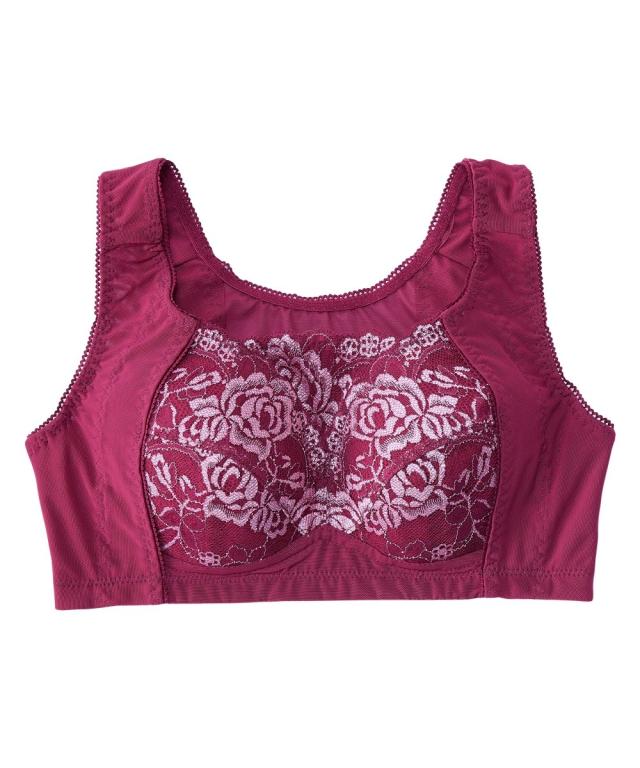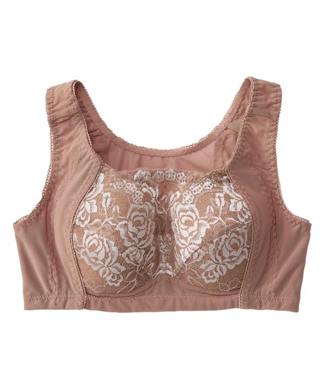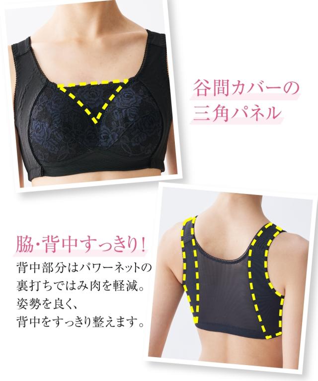 ノンワイヤーでもしっかりホールド。グラマーバストの高さも揺れもおさえると人気のブラジャーがさらに進化!カップのとがりが目立たないパターンに変更することで脇パネルも広くなり、さらに胸をスリムに美しく見せます。