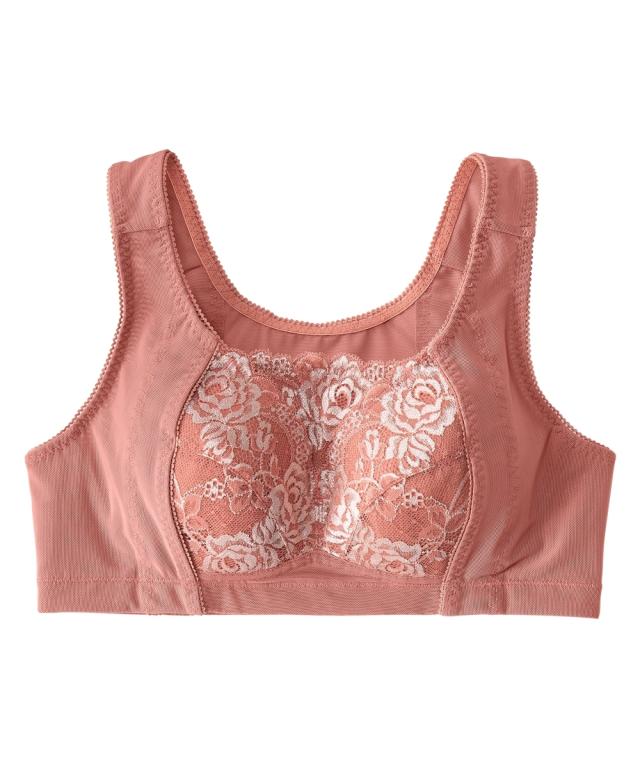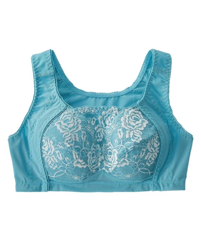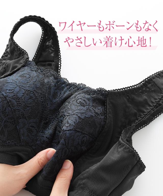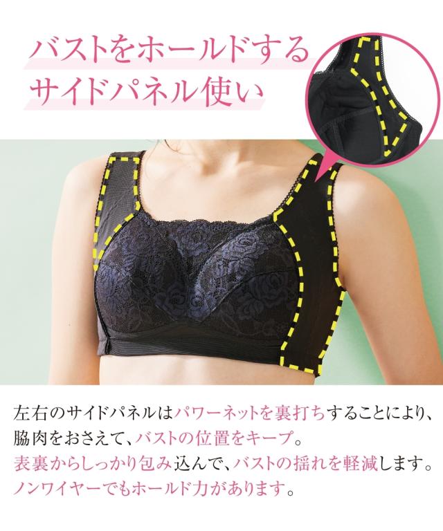 ノンワイヤーでもしっかりホールド。グラマーバストの高さも揺れもおさえると人気のブラジャーがさらに進化!カップのとがりが目立たないパターンに変更することで脇パネルも広くなり、さらに胸をスリムに美しく見せます。