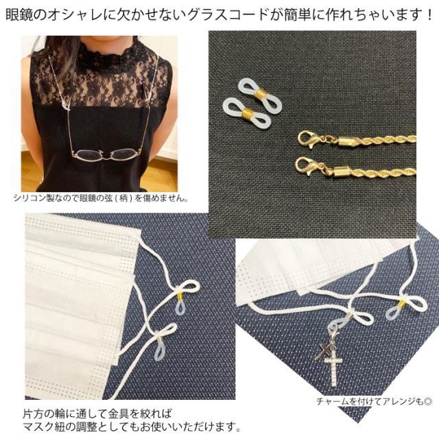 【メール便対応】グラスコードパーツ 1ペア(同色2個セット) p-glasscord めがね留め おしゃれ 首 チェーン マスク紐 調整 2way【留め具 金具 シンプル シリコン(樹脂ゴム) メガネ メガネチェーン メガネストラップ ネックレス アクセサリー デコ オリジナル パーツ】┃