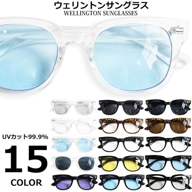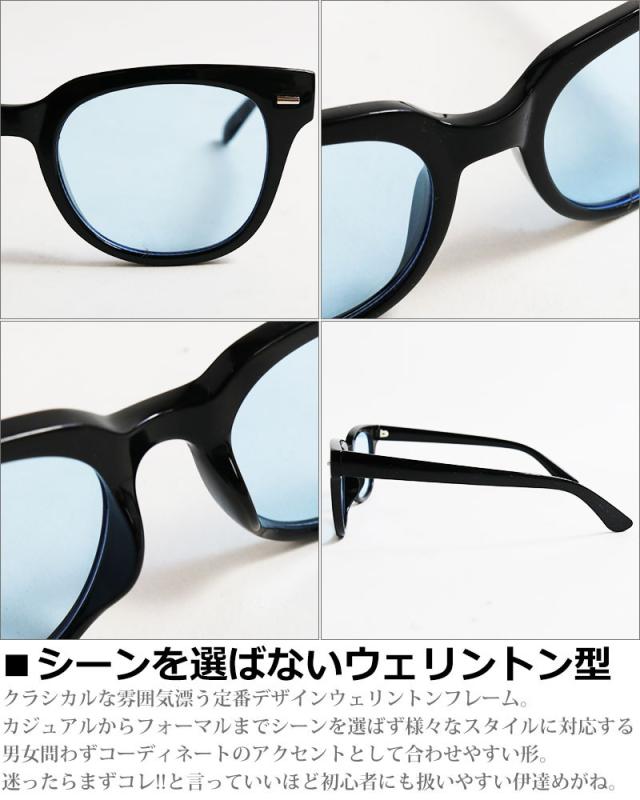 サングラス ウエリントン メンズ レディース UVカット ボストン 伊達メガネ 眼鏡 めがね カラーレンズ