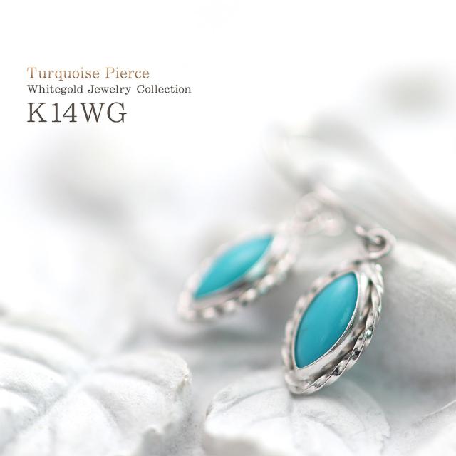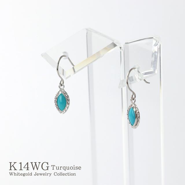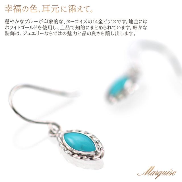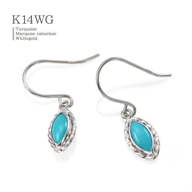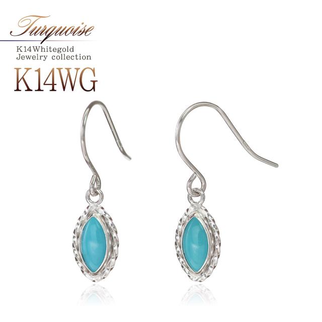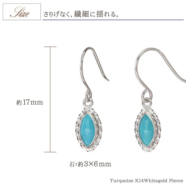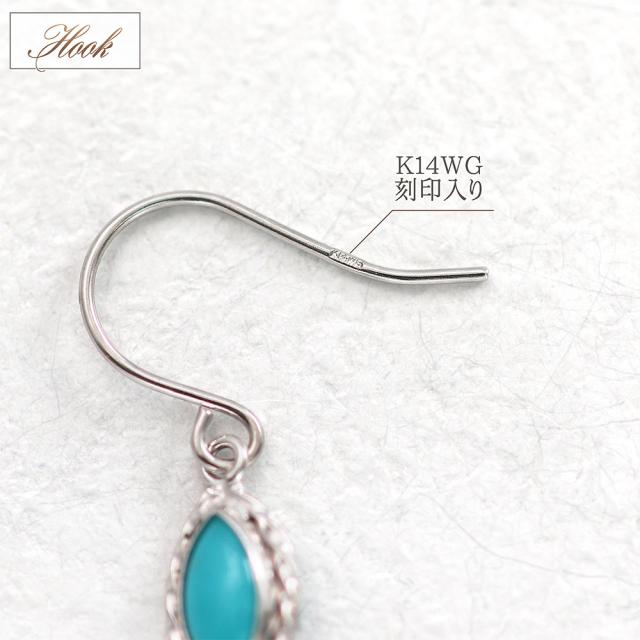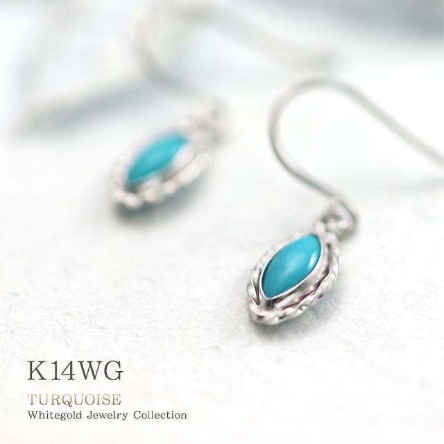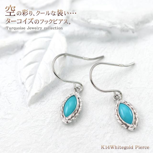 フックピアス レディース ターコイズ かわいい 14金 ホワイトゴールド トルコ石 アクセサリー ジュエリー プレゼント 小さい シンプル 水色 14K K14 12月 誕生石 記念日 誕生日 ギフト 贈り物 女性 彼女 妻 嫁 奥さん 揺れる 小ぶり