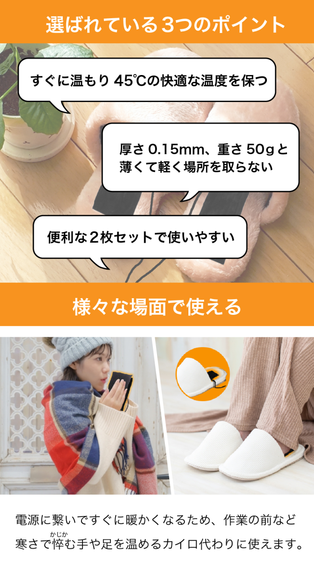 衣類などのちょっとした隙間に挟むだけで、手軽に寒さ対策ができます。