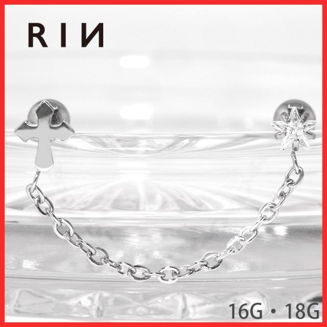 [16G(約1.2mm)]軟骨チャーム付0158 ボディピアス 軟骨ピアス 16G 立爪 ジュエル チェーン クロス sale-105