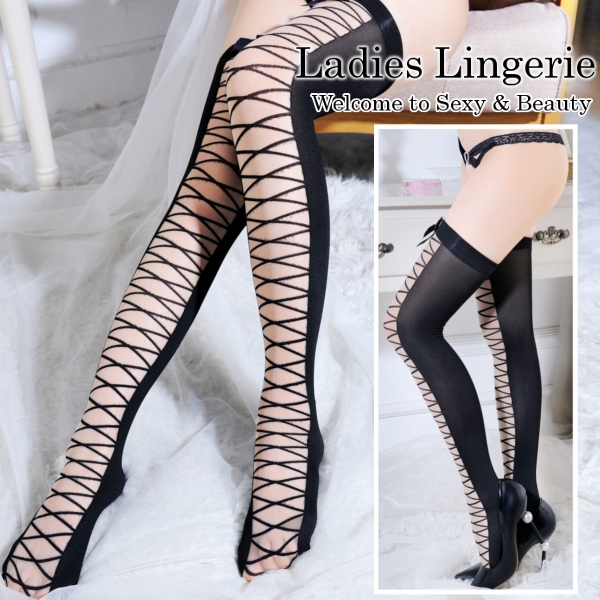 ストッキング 太もも丈 人気 セクシー かわいい ガーター パンスト 美脚 レディース 黒 ブラック ベージュ フリーサイズ 送料無料 ネコポス便