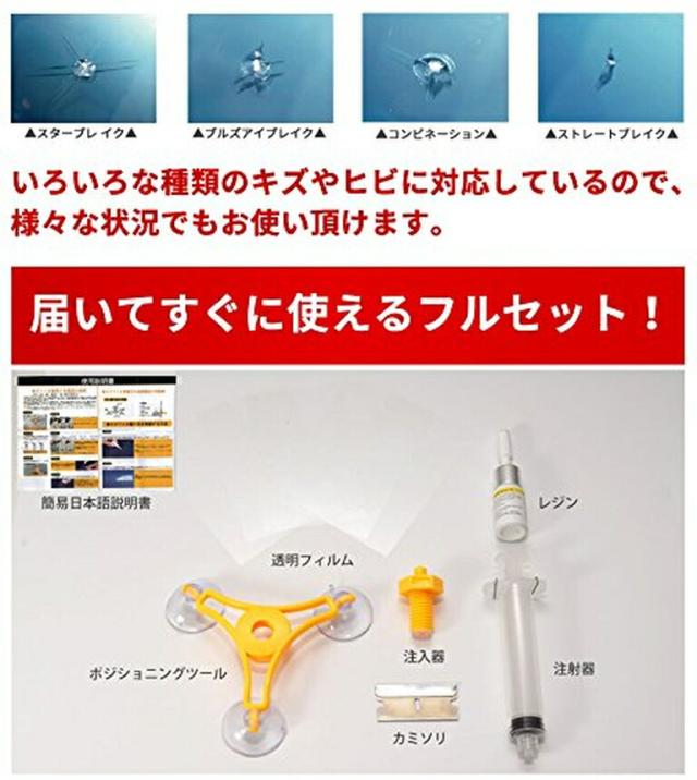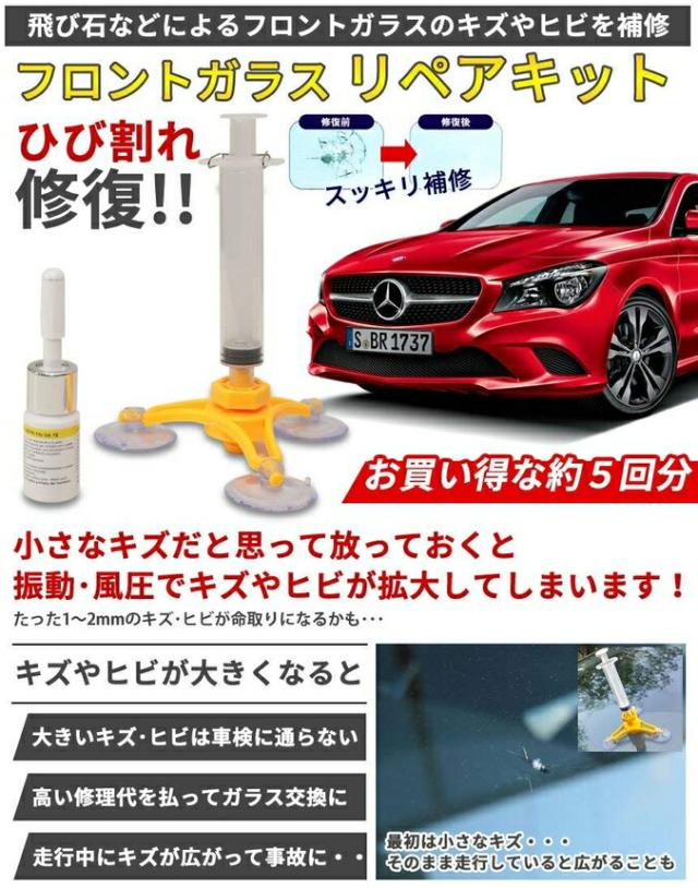 日本語簡易説明書付き 車用 フロントガラス リペア キット 飛び石 ひび割れ キズ 補修 修理 4点固定 5ヶ所分