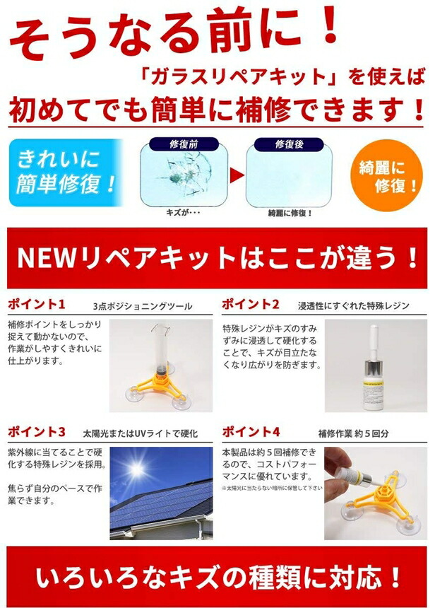 「ガラスリペアキット」を使えば、誰でも簡単に補修できます