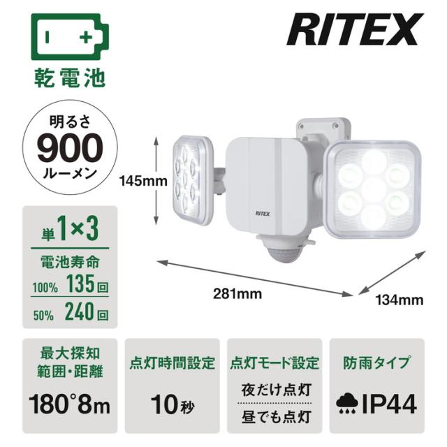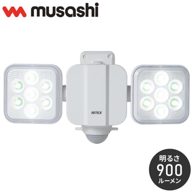 ムサシ 人感センサーライト 屋外 防犯ライト 乾電池式 5W×2灯 フリーアーム式LED乾電池センサーライト LED-270 自動点灯 人感センサー 強盗対策 防犯灯 防犯グッズ RITEX(代引不可)