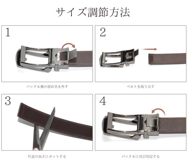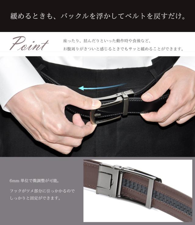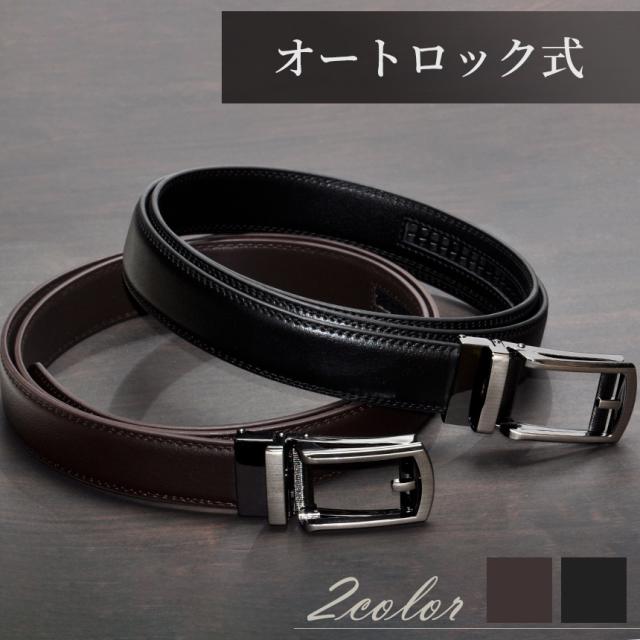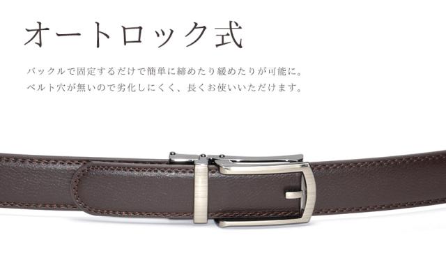 ベルト メンズ オートロック 式 穴なし ガチャベルト レザー 調 ビジネス スーツ ブラック ブラウン