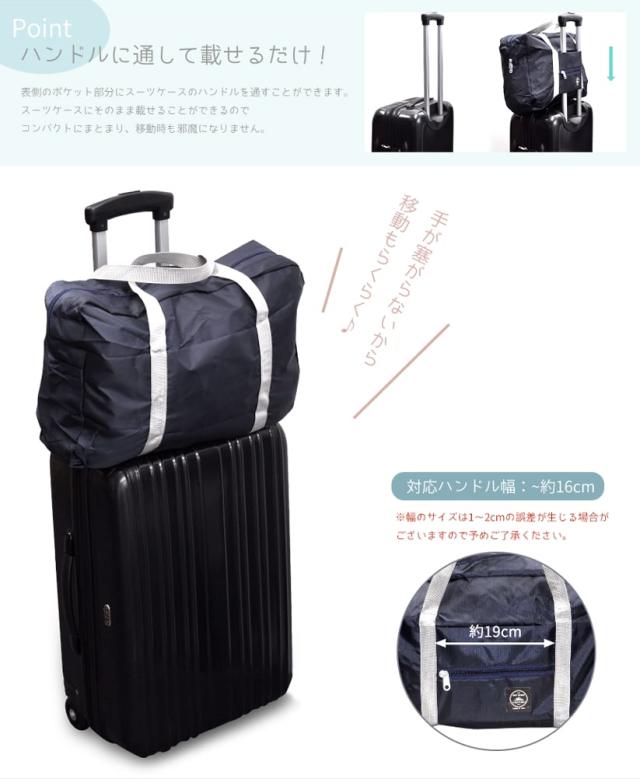 スーツケースの持ち手を通して一体化できるキャリーオンバッグです。