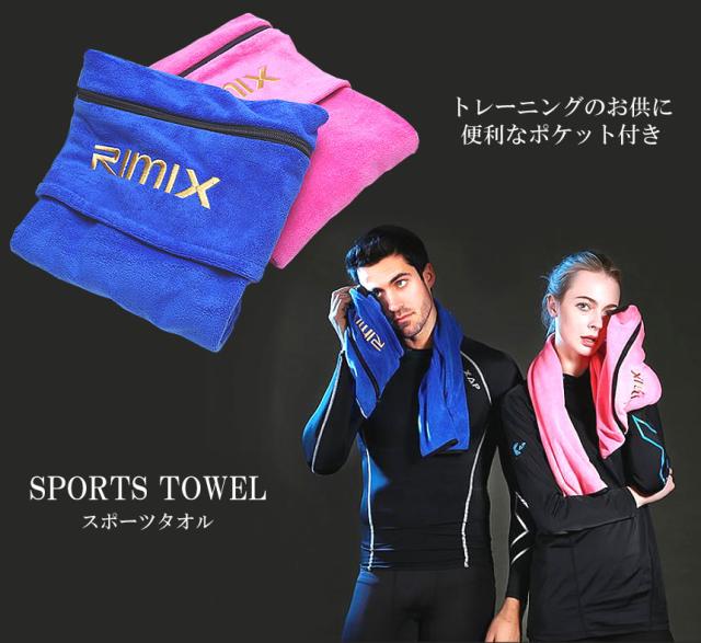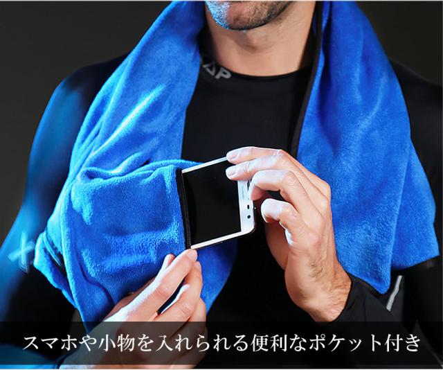スポーツタオル タオル トレーニング 小物入れ ポケット付き 綿 ジム 大きめ 運動