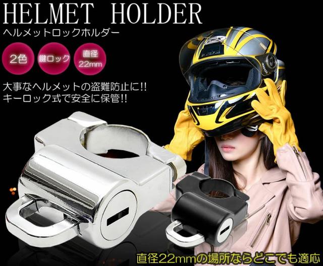 バイク用 ヘルメット ホルダー キーロック ツーリング バイサイクル 防犯 鍵 直径22mm 盗難防止