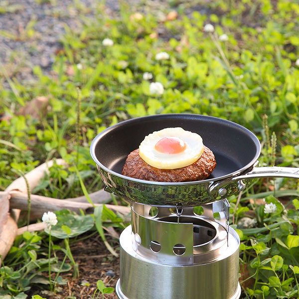 コンパクトサイズなのでアウトドアでも活躍します。アヒージョやハムエッグを作るも良し、豪快にお肉を焼くのも良し。蓋をしてじっくり熱を通しながらの調理も出来るので、キャンプご飯も本格的な味を楽しめます。フッ素樹脂で汚れも落ちやすく後片付けも楽で、綺麗な状態で持ち帰りも出来ます。