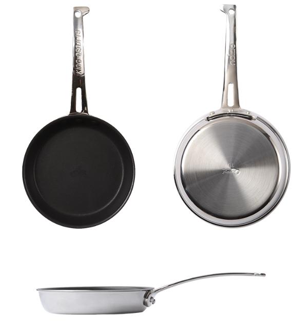 プロの現場で培われた性能をご家庭向けに造られた片手フライパンです。高効率ステンレスと極厚アルミの合金を使用している為、ガスでのご使用はもちろん、IHからのエネルギーも効率よく吸収して食材に伝導します。