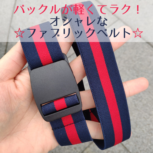 LAZA 【 ネイビー × レッド × ネイビー 】プラスチックバックル ベルト 調節可能伸縮性ウエストバンド スカート パンツ軽量