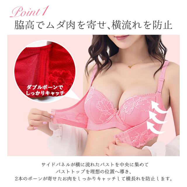 サイドパネルが横に流れたバストを中央に集めてバストトップを理想の位置へ導く。