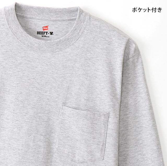 ヘインズ Hanes ビーフィー BEEFY ポケット ロングスリーブTシャツ メンズ トップス tシャツ 長袖 カットソー ロンT 綿100% 無地 秋 冬 ブランド ユニセックス ヘビーウェイト シンプル h5196