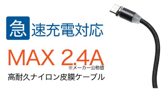 MAX2.4Aの急速充電に対応し、ケーブルには耐久性の高いナイロンを採用。