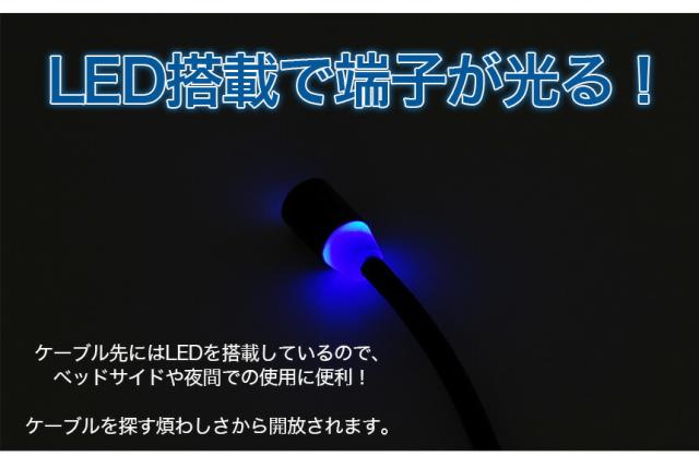 ケーブル先にはLED搭載で光り、夜間の視認性が上がります。