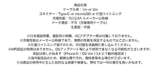 データ通信:不可(充電専用ケーブル)