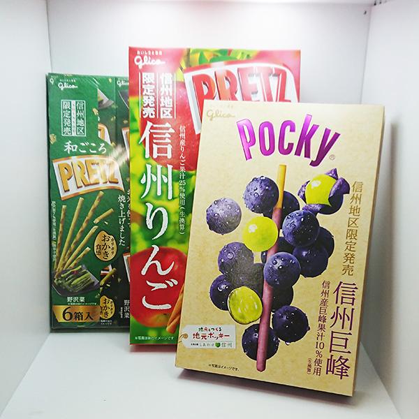 信州長野限定の人気の信州りんごプリッツ、野沢菜プリッツ、巨峰ポッキーセット