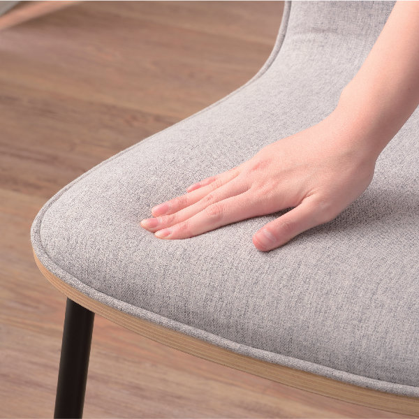 座面と背もたれは、クッションが張られているので身体を優しく支えてくれます。しっとりとした柔らかさがあるので、座り心地も抜群です。また、座面の縁はパイピングで縫い代をくるむことで、布端がほつれないようにしてあります。