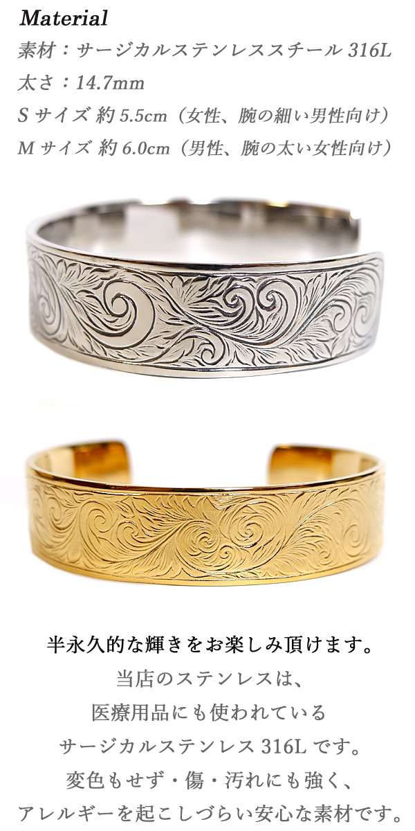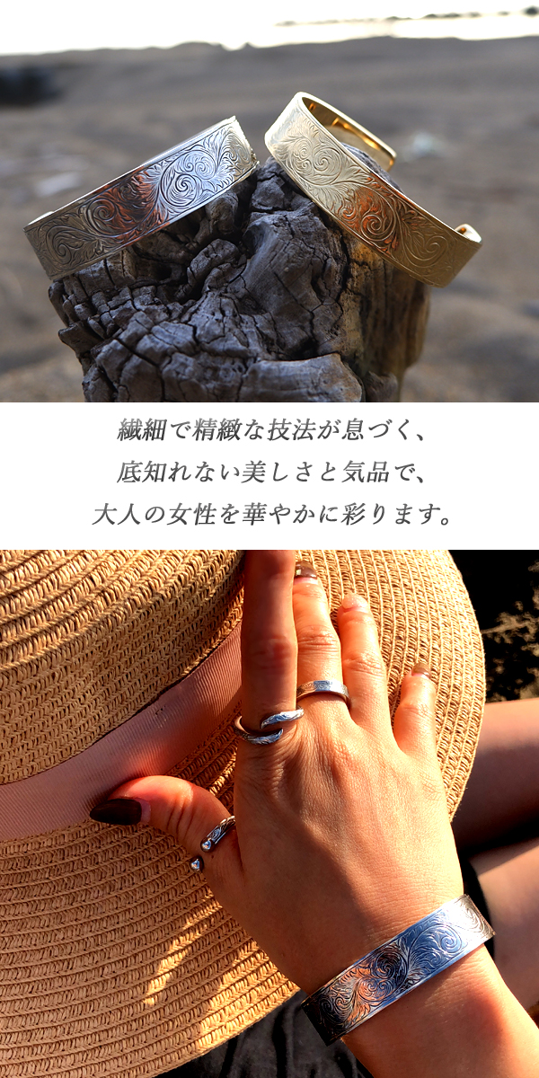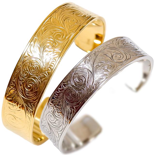 ハワイアンジュエリー 太め バングル スクロール 波 レディース メンズ 金属アレルギー対応 サージカル ステンレス プレゼント ラッピング対応