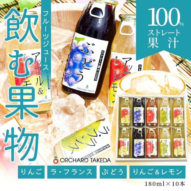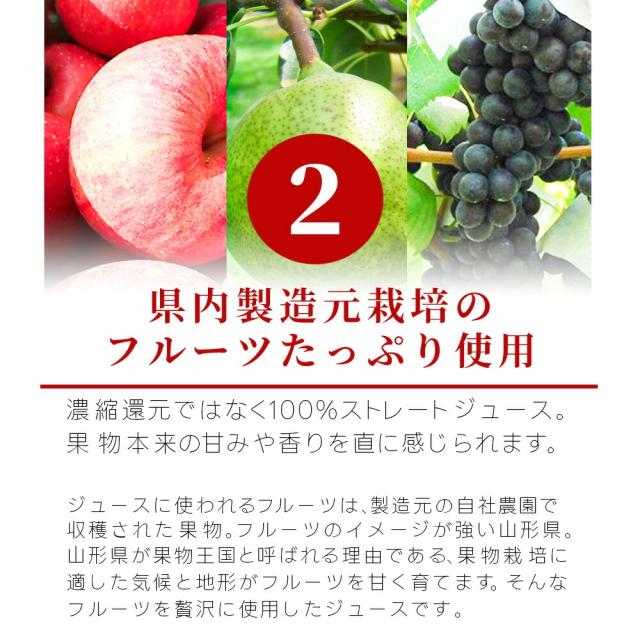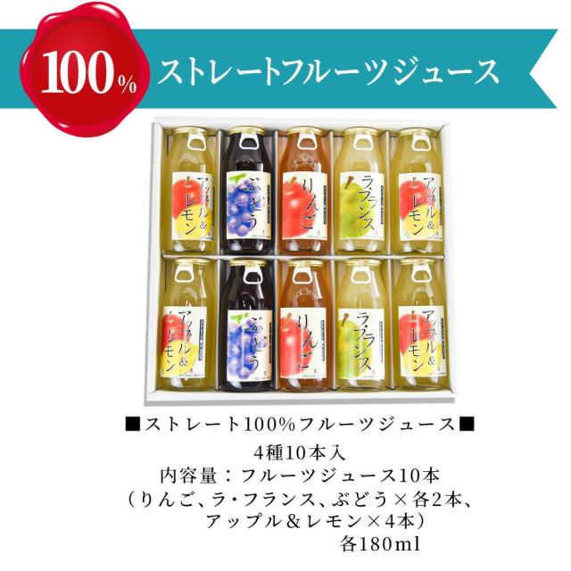 フルーツジュース 100% ストレートジュース 180ml×10本入り 山形県産 国産 手作り 無糖 りんご ラフランス ぶどう 他