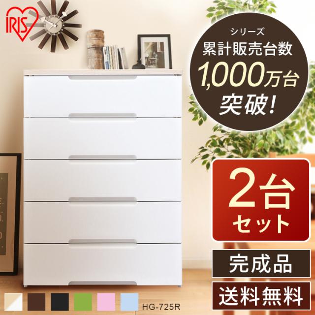 ※271139831 へ統合※チェスト 収納ボックス 収納ケース 引き出し チェスト 5段 【2個セット】幅73cm HG-725R アイリスオーヤマ 奥行約41.5cm×高さ約100cm 完成品 五段 タンス たんす 収納 収納用品 押入れ収納 衣類収納 衣装ケース
