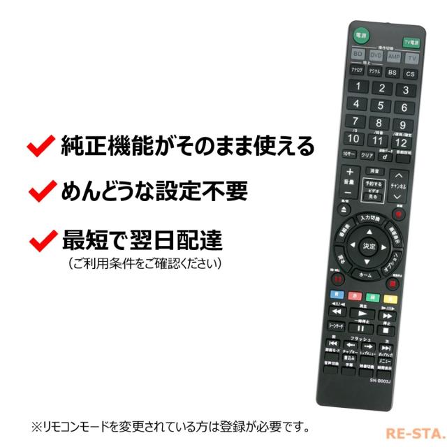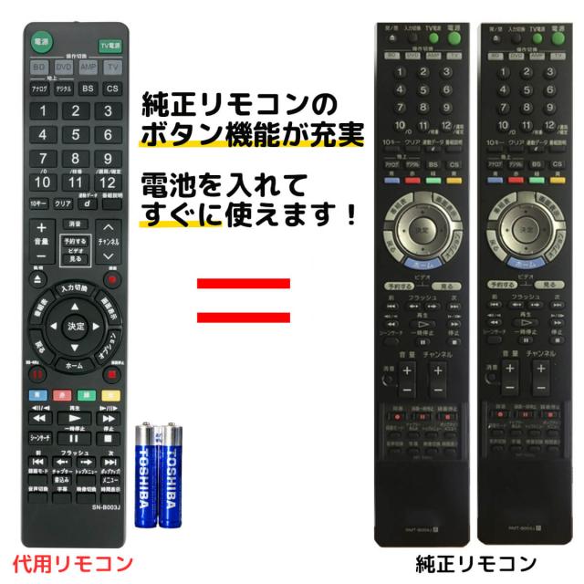 ソニー ブルーレイ リモコン 電池付き RMT-B003J RMT-B004J 148044113 SONY レコーダー 代用リモコン