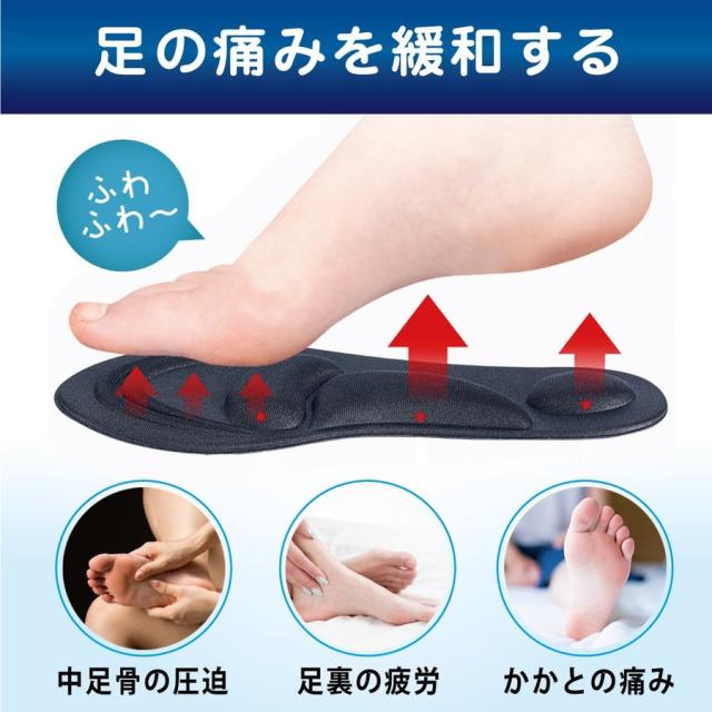 衝撃吸収4D構造が歩行時の衝撃を吸収し、足の疲れ・痛みを和らげる効果が期待できます。