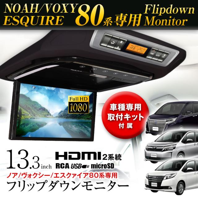フリップダウンモニター 13.3インチ ノア ヴォクシー 80系 エスクァイア サンルーフ無し車用 ZRR80W・85W・80G・85G ZWR80G MAXWIN