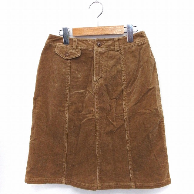 【中古】スカート コーデュロイ 台形 ひざ丈 コットン 綿 64-91 キャメル 茶 /FT47 レディース