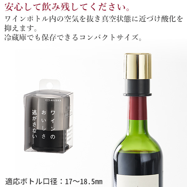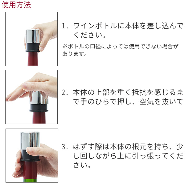 飲み残したワインのボトル内の空気を抜き、真空状態に近づけ酸化を抑えワインの美味しさを保ちます。