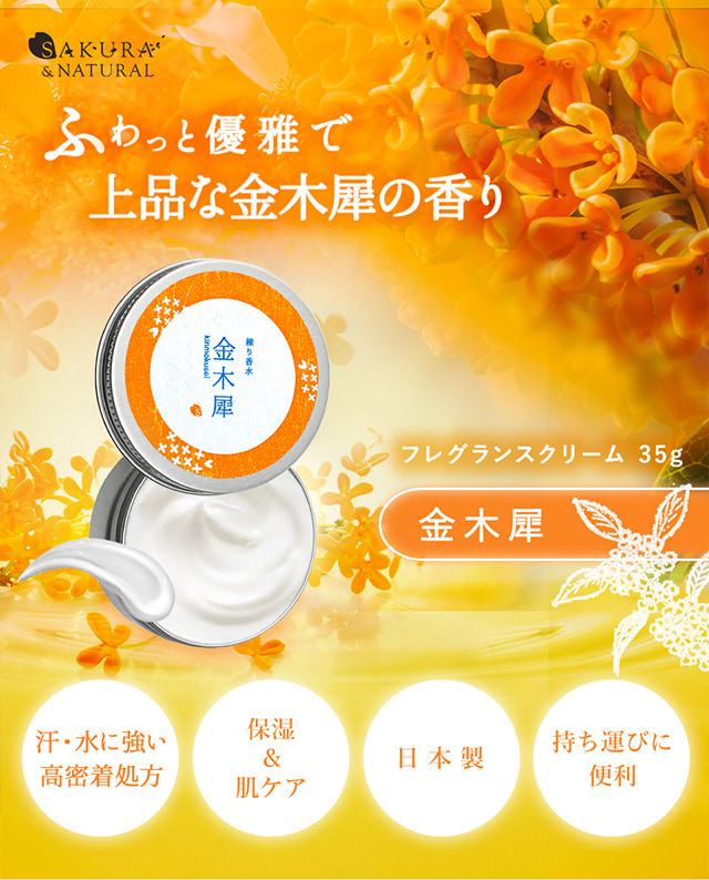 練り香水 金木犀 香水 35g [日本製] 金木犀の香り キンモクセイ香水 コロン 金木犀の香水 フレグランスバーム ヴァーム キンモクセイ パフューム 練香水 フレグランスクリーム アロマ お試し 爽やか 芳香剤 送料無料 メール便 SAKURA&NATURAL