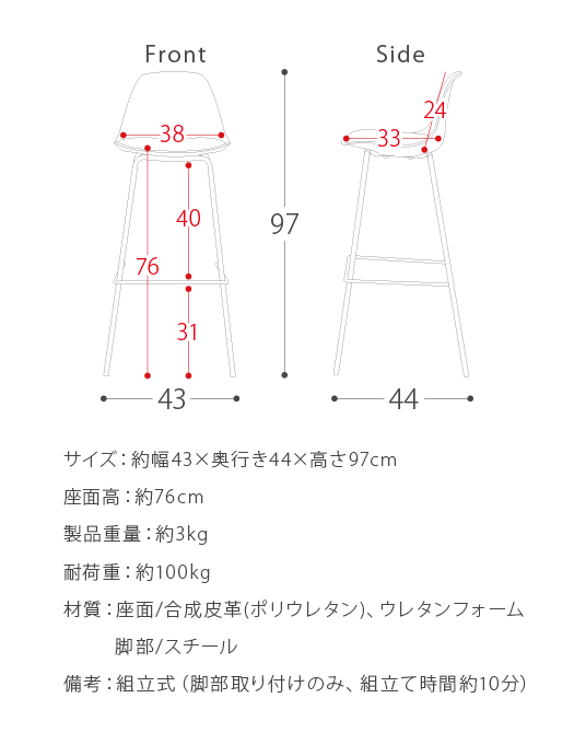 カウンターチェア バーチェア ハイスツール 椅子 ホワイト