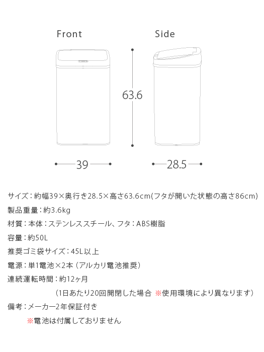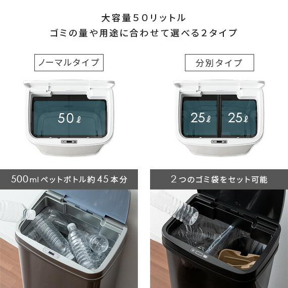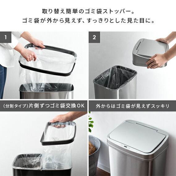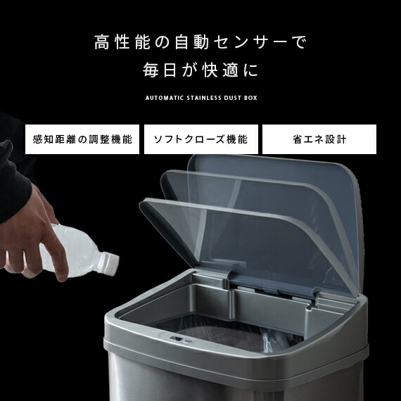 ゴミ箱 ふた付き 自動開閉 ごみ箱 おしゃれ 自動センサー 50l キッチン 屋外 人気 ダストボックス 分別 50リットル フタ付き 蓋付き 大型 インテリア雑貨 シルバー ブラック ホワイト
