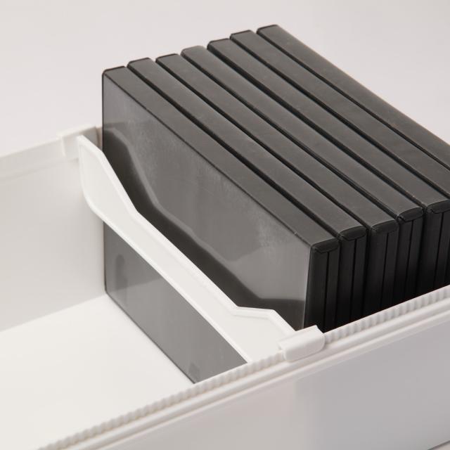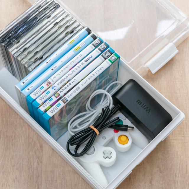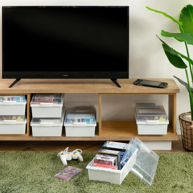 お気に入りのCDやDVD、ゲームソフトを大切に保管するのに役に立ちます。フタが付いているので埃が被らずキレイに保管でき、ゲーム機本体とゲームソフトを一緒に収納すれば、お子様のお片付けの習慣も身に付きやすくなります。