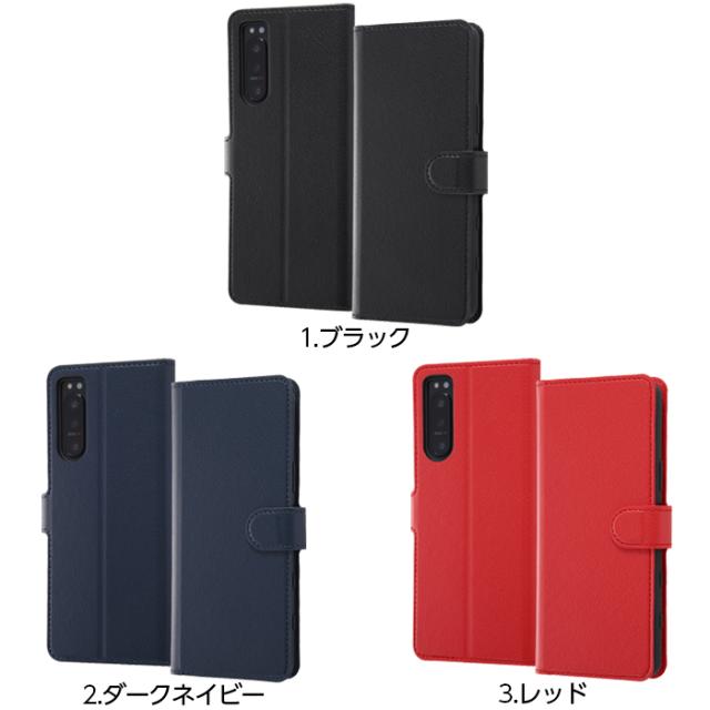 Xperia 5 II ケース カバー 手帳型 無地 ブラック レッド ネイビー レザー 保護 マグネット シンプル カード ポケット 軽い SO-52A SOG02 XQ-AS42 エクスペリア