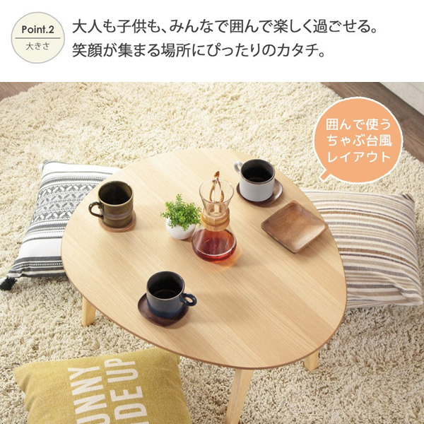 リビングテーブル 丸 幅75 木製 折りたたみ おしゃれ 楕円 シンプル 一人暮らし ローテーブル センターテーブル 机 座卓 岩附