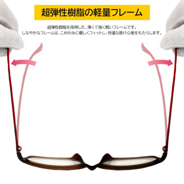 | ●フレームカラー BR/RE(ブラウン/レッド) ●レンズカラー ライトカラー | ●素材 フレーム:プラスチック テンプル:プラスチック、ニッケル合金 レンズ:プラスチック ●度数 +1.00、+1.50、+2.00、+2.50、+3.00、+3.50の6度数展開。 |
