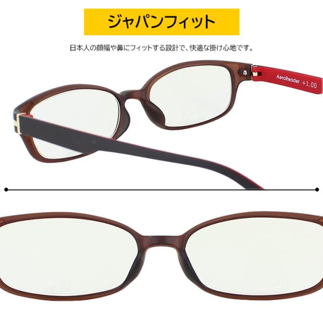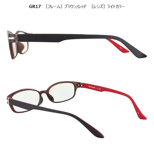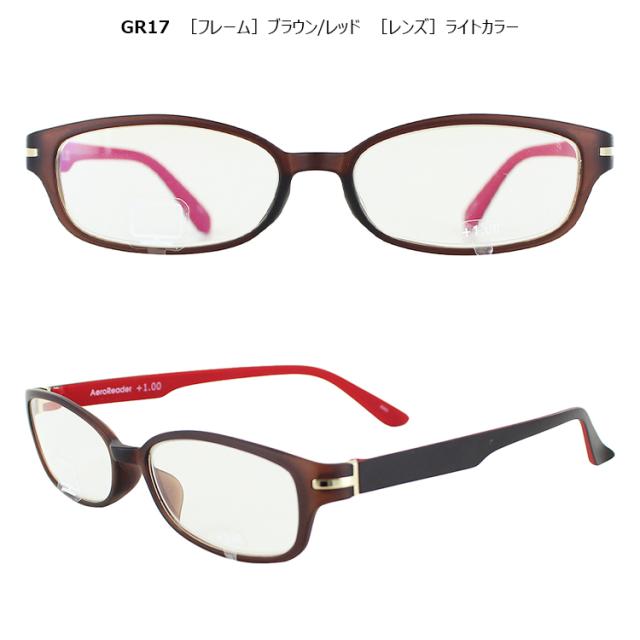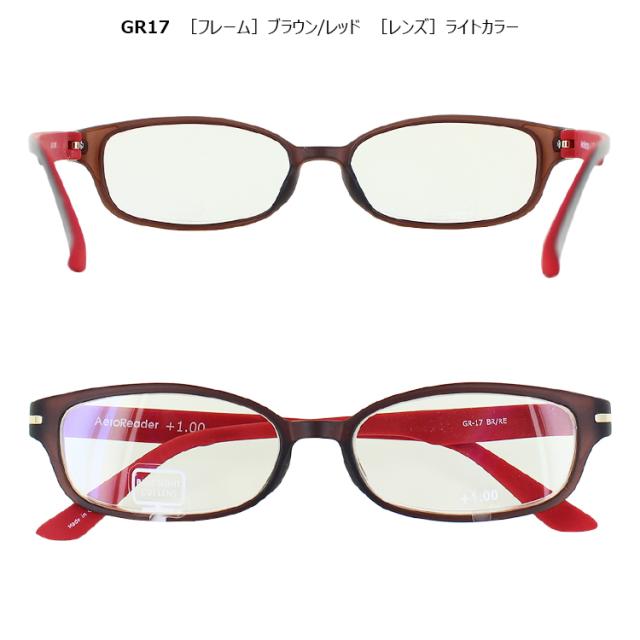 老眼鏡 おしゃれ ブルーライトカット レディース メンズ リーディンググラス シニアグラス AeroReader エアロリーダー スクエア GR17 薄型 スリム 超弾性樹脂 軽量フレーム 6度数展開 1.0 1.5 2.0 2.5 3 3.5 読書グラス カジュアル ブラウン/レッド【定形外選択で送料無料】