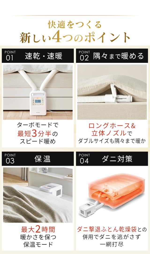 ★クーポンあり★ 布団乾燥機 アイリスオーヤマ コンパクト カラリエ ハイパワー ツインノズル 衣類乾燥 靴乾燥 ダニ退治 ダニ対策 湿気 花粉対策 速乾 梅雨対策 小型 脱臭 布団ドライヤー シューズドライヤー おしゃれ 軽量 速暖 ふとん乾燥機 FK-WH1 *