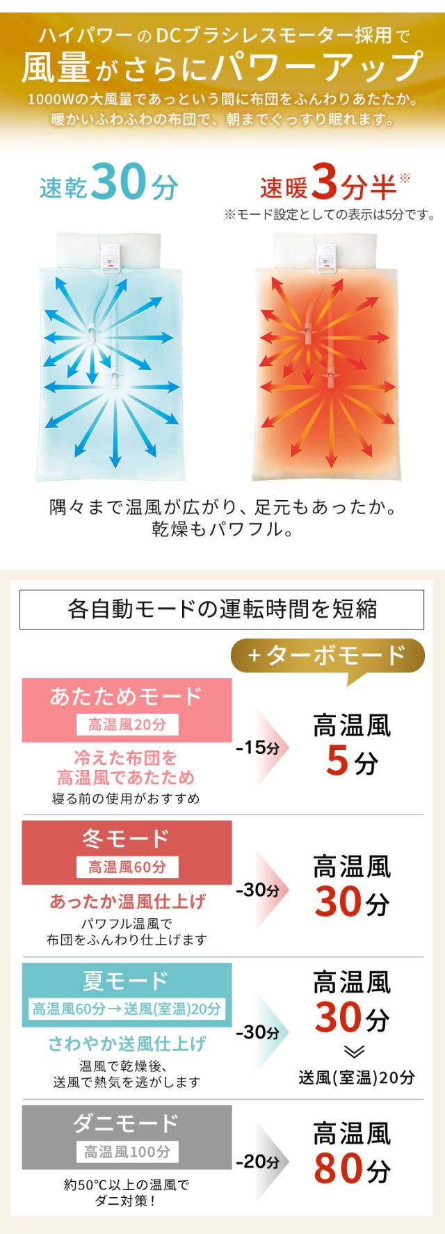 掛け布団だけでなく敷布団までしっかり暖めます。
