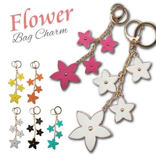 バック チャーム バッグチャーム フラワー PUレザー カラフル キーホルダーストラップ 花 アクセサリー カラフル キラキラ ゴールド チェーン キーリング キーチャーム バック 合皮